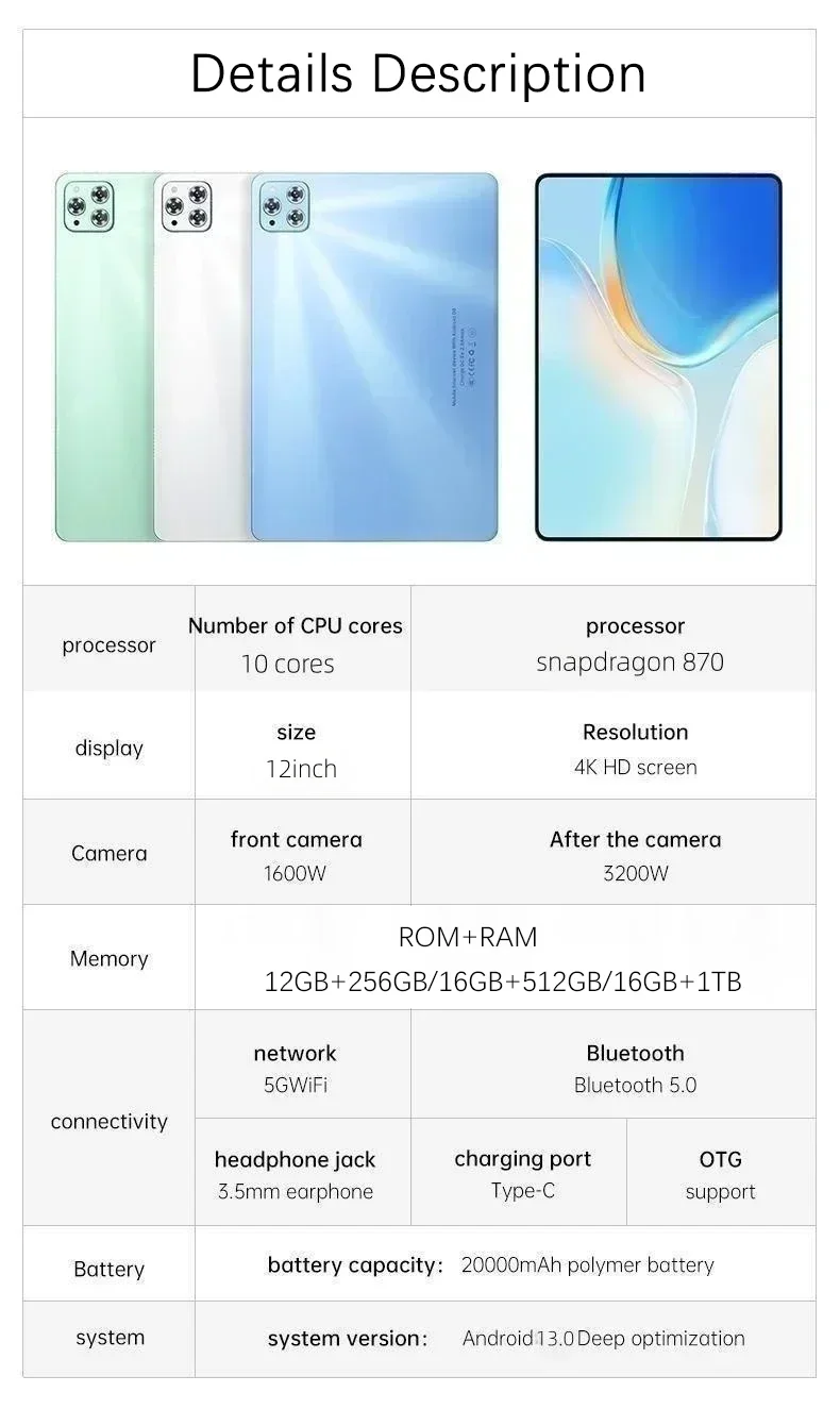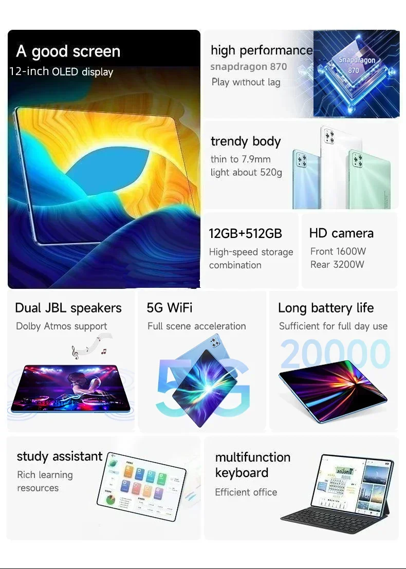 2024 Original Tablet Pad Air Pro 11Inch X95 16GB+1TB Tablet Android 13 Snapdragon 870 Core Pad Tablet PC Phone Dual 5G WiFi GPS