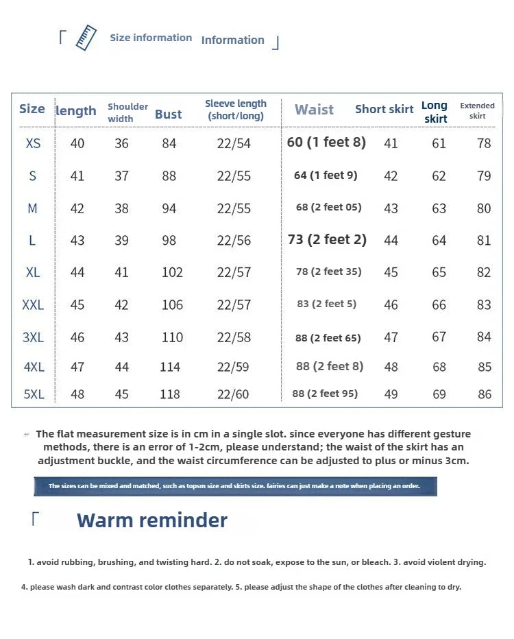 Product configuration: Long sleeved/short sleeved+45cm skirt+red tie