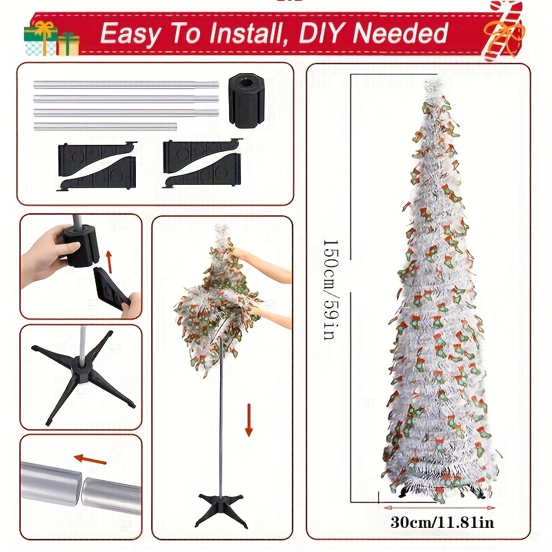 59" Pop-Up Christmas Tree with Reflective Sequins - Slim, Foldable Design for Home & Party Decor, Perfect for Halloween & New Year Celebrations, PVC Material