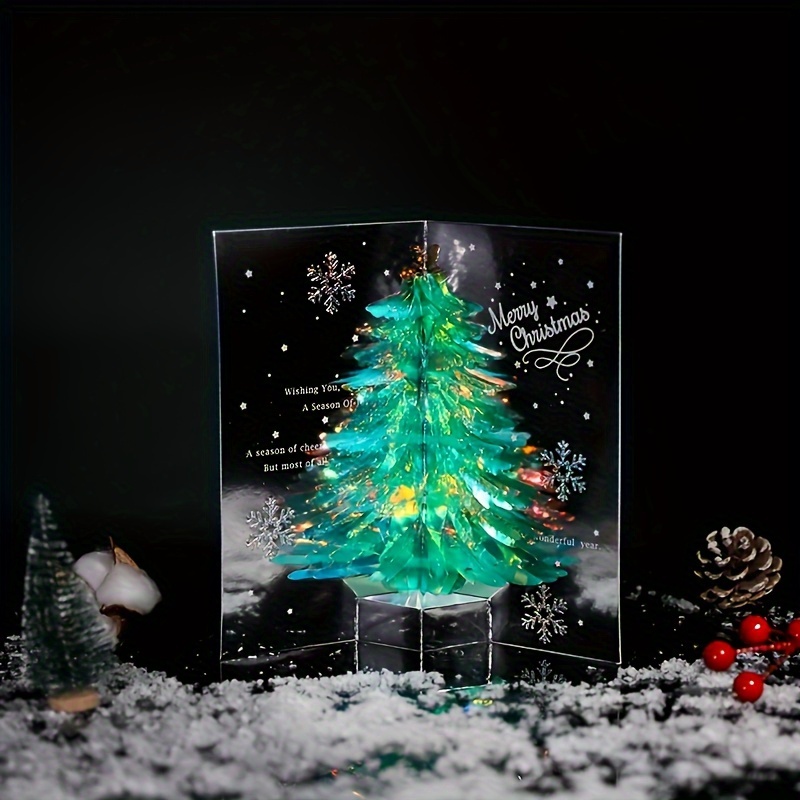 Handcrafted 3D Pop-Up Christmas Tree Greeting Card - Holiday Wishes for Anyone, Geometric Design, Fashionable Stationery & Gift Packaging