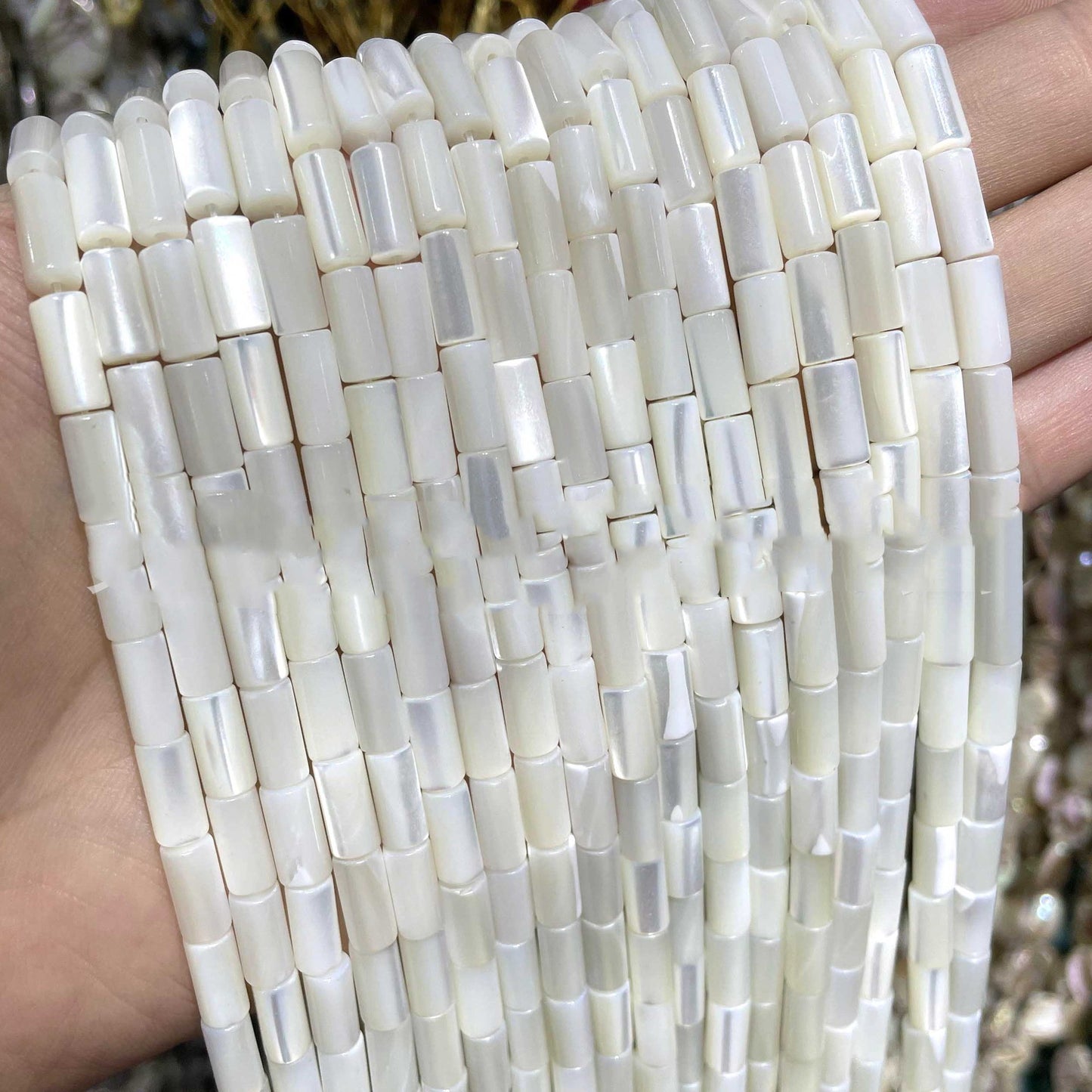 Natural Mop Shell Beads Column White Beige Jewelry Making DIY Bracelet Accessories