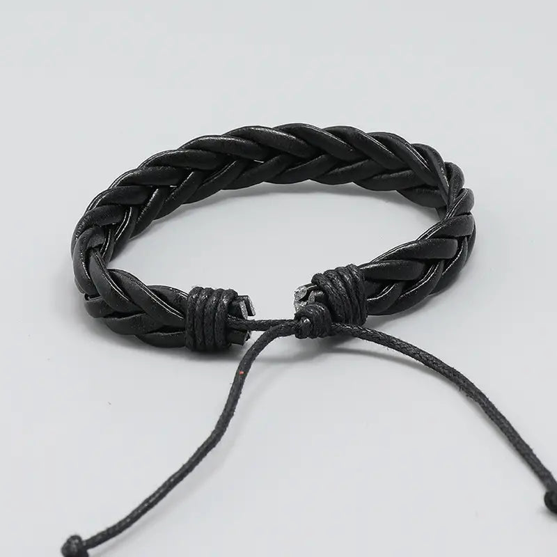 Simple Handwoven Three-strand Braided Black Leather Bracelet For Men